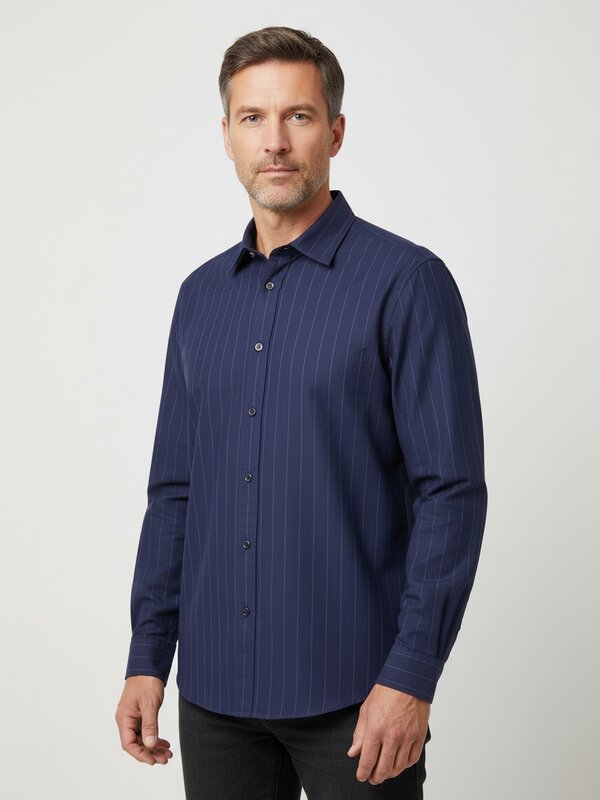 Navy Streifen auf robustem Oxford – zeitlos und substanziell