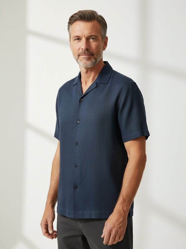 Die italienische Knopfleiste verleiht diesem dunkelblauen Kurzarmhemd eine dezente mediterrane Note. Das reine Leinen fühlt sich luftig an und reguliert die Temperatur natürlich – ideal für warme Tage, an denen Baumwolle zu schwer wäre. Mit seiner klaren Schnittführung und der gedoppelten Rückenpasse passt es sowohl ins Büro als auch zur entspannten Gartenparty. Die tiefe Blaufärbung bleibt auch nach häufigem Waschen intensiv und entwickelt die für Leinen typische, charmante Struktur. Strellson verbindet hier Schweizer Präzision mit südländischer Lässigkeit – funktional durchdacht, ohne steif zu wirken.Unser Tipp: Tragen Sie das Hemd offen über einem weißen T-Shirt zur hellen Chino für einen modernen Sommerlook.