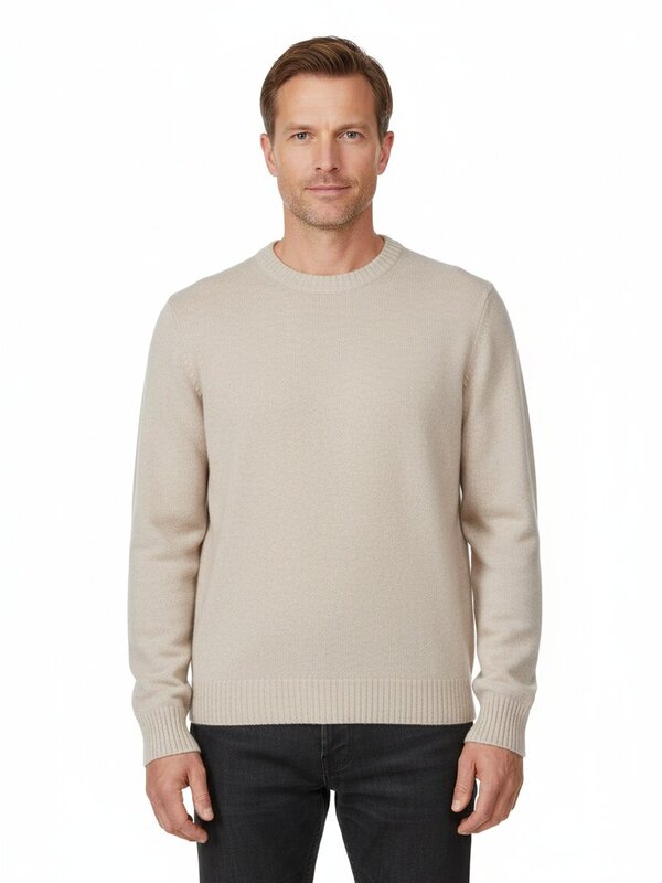 Wollpullover in warmem Sand – klassisch und zeitlos