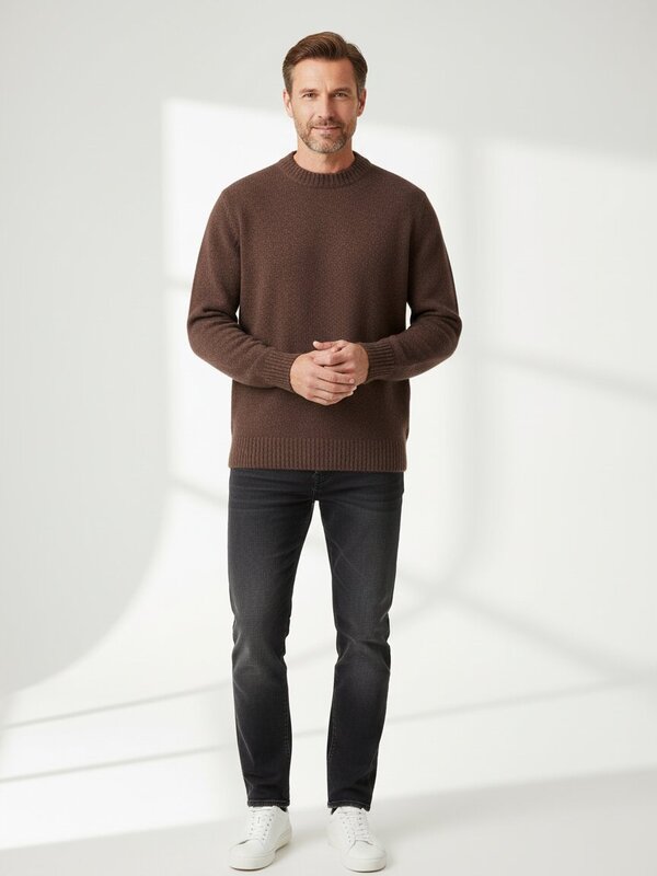Klassischer Wollpullover in warmem Braun mit feiner Struktur