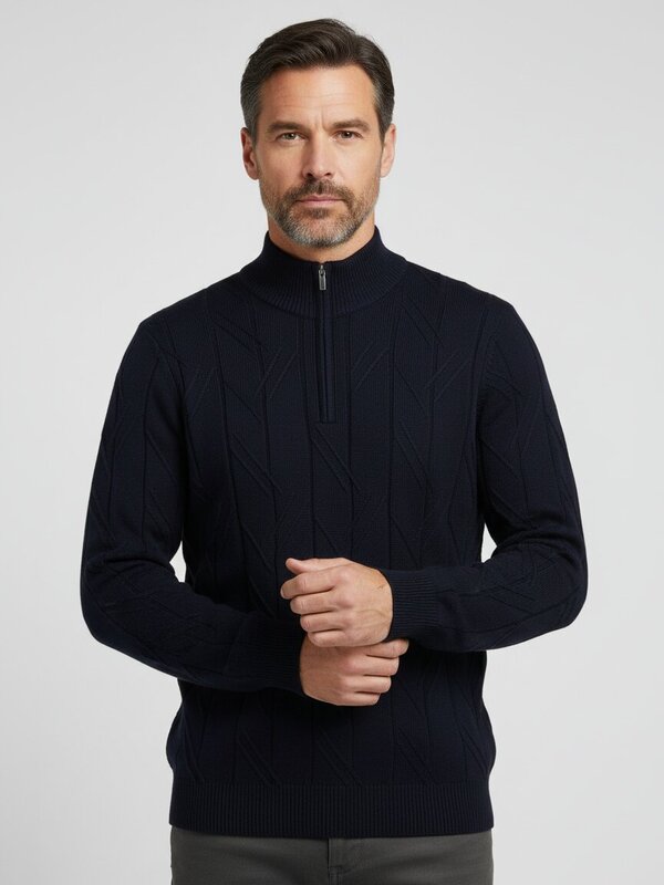 Der fein strukturierte Strick in klassischem Marineblau verleiht diesem Troyer eine dezente Oberflächenspannung, die Tiefenwirkung schafft. Extrafeines Merinowolle reguliert die Körpertemperatur natürlich und sitzt dabei federleicht auf der Haut – ideal für den Wechsel zwischen Büro und Freizeit. Der Stehkragen mit durchgehendem Reißverschluss ermöglicht flexible Lüftung und verleiht dem Pullover eine sportiv-elegante Silhouette. Rippenstrickbündchen an Ärmeln, Ausschnitt und Saum sorgen für präzise Passform und Langlebigkeit. BOGGI Milano verbindet seit 1939 italienische Schneidertradition mit technologischer Innovation – dieser Troyer verkörpert diese Philosophie durch hochwertige Materialauswahl und durchdachte Verarbeitung.Unser Tipp: Kombinieren Sie den Troyer mit einer anthrazitfarbenen Chino und braunen Lederschuhen für einen zeitlosen Business-Casual-Look, der sich mühelos vom Arbeitsplatz in den Feierabend überführen lässt.