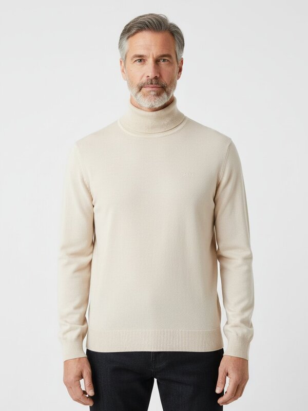 Der markante Stehkragen prägt das Gesicht dieses Pullovers und setzt ein unverwechselbares Statement – eine Signatur von BOSS Orange, die Klassik mit urbaner Eigenwilligkeit verbindet. Die Mischung aus 60% Schurwolle und 40% Polyacryl bietet herrliche Wärmespeicherung bei gleichzeitiger Elastizität und Pflegeleichtigkeit. Der Schnitt sitzt modern und entspannt, ideal für Übergangstage oder als Layering-Piece unter Jacken im Alltag. Das helle Beige harmoniert mit nahezu jeder Grundgarderobe und lässt sich von Business bis Casual vielseitig kombinieren. BOSS Orange steht für deutsche Handwerkstradition mit einem Hauch von Nonkonformismus – hochwertige Materialien, die nicht gefallen wollen, sondern überzeugen.Unser Tipp: Kombinieren Sie den Pullover mit einer dunklen Chino und Chelsea Boots für einen zeitlosen Herbst-Look, oder tragen Sie ihn unter einer Overshirt-Jacke für zusätzliche Textur und Tiefenwirkung.