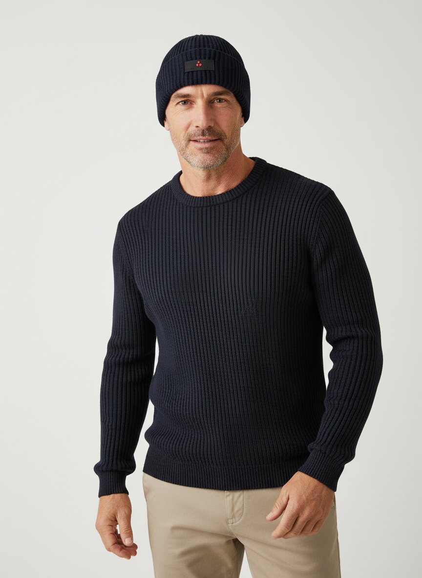 Der markante Umschlag in tiefem Nachtblau verleiht dieser Strickmütze eine moderne, urbane Silhouette. Die luxuriöse Mischung aus Wolle, Polyamid und feinstem Kaschmir fühlt sich weich an und wärmt zuverlässig, ohne zu kratzen. Durch die klassische Rippenstrick-Struktur passt sich die Mütze flexibel an und behält dabei ihre Form – ideal für den täglichen Einsatz in der Stadt. Die satte, dunkelblaue Färbung harmoniert mühelos mit winterlichen Mänteln und Jacken in Grau, Schwarz oder Marine. Peuterey verbindet toskanische Textiltradition mit alpiner Funktionalität – seit 2002 entstehen so durchdachte Accessoires für anspruchsvolle Wintergarderobe.Unser Tipp: Tragen Sie die Mütze zum dunkelblauen Wollmantel und cognacfarbenen Lederhandschuhen für einen stimmigen Winter-Look.